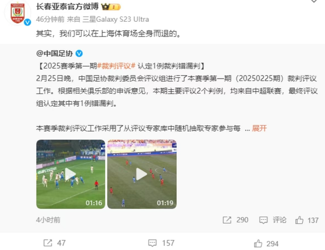 太毅力了!谁也莫得念念到智奥鹏城(深圳)展览有限公司,中超新赛季第一轮就出现了荒芜的误判,更让东谈主莫得念念到的是,一向千里稳低调的长春亚泰尽然公开叫板和质疑中国足协,毅力发声抒发不悦,此次事件的3个细节在中国足坛齐长短常荒芜了。